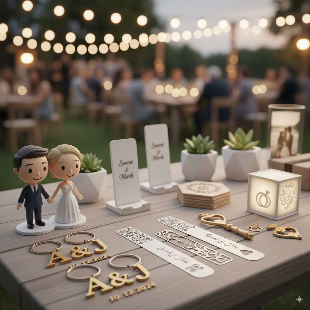 En Unikat3D transformamos cada boda en una experiencia inolvidable con detalles personalizados para invitados y accesorios exclusivos, creados mediante impresión 3D de última generación.