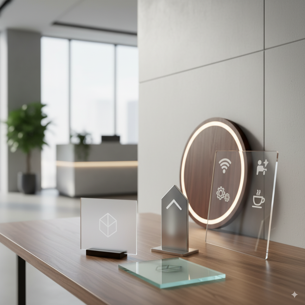 Refuerza tu identidad de marca en oficinas, ferias y eventos con señalética diseñada a medida.